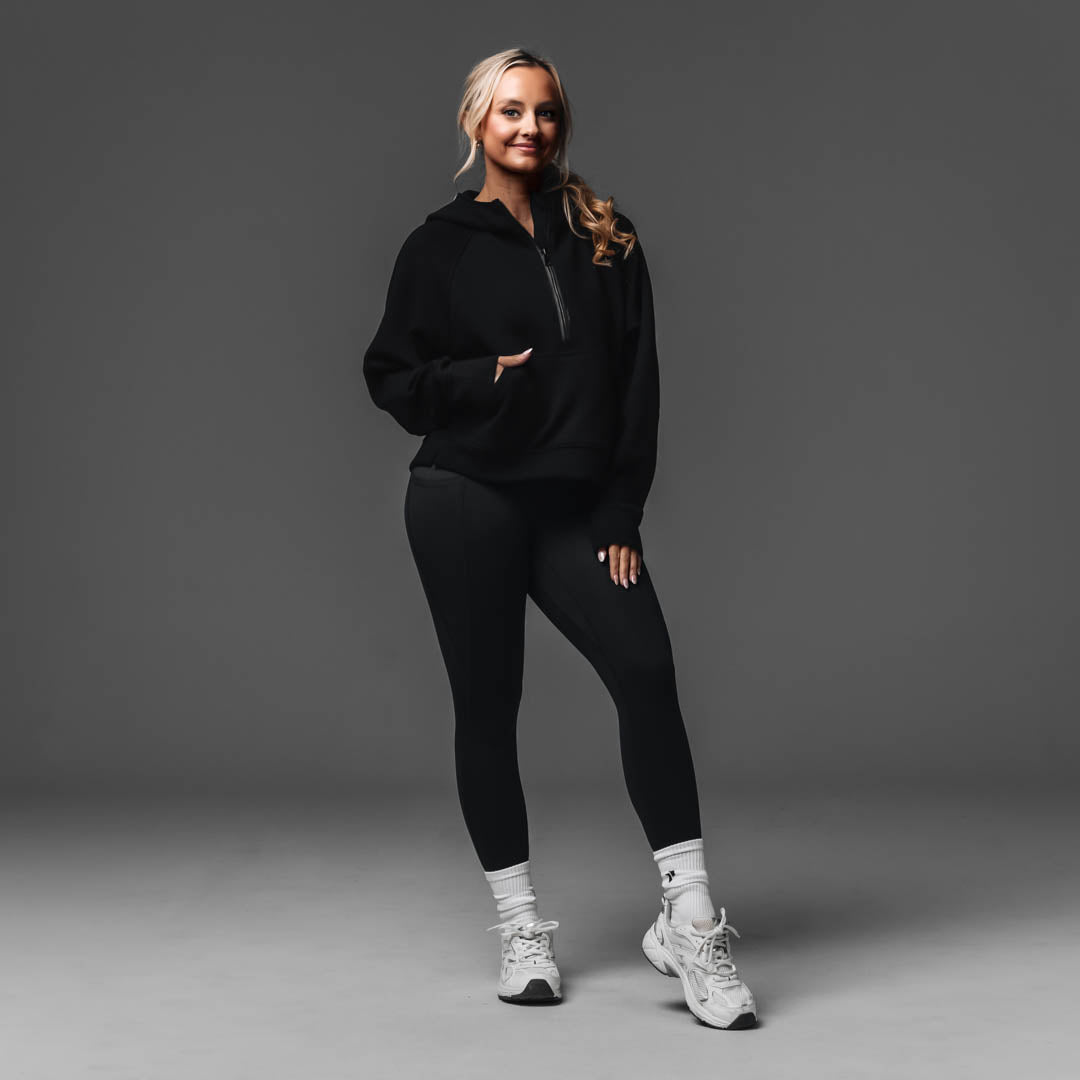 The Prime 1/2 Zip Hoodie is ultra-soft. oversized. and designed for all-day comfort. With its relaxed fit. cozy hood. and classic half-zip style. it’s made to keep you comfortable whether you’re training. lounging. or on the move.