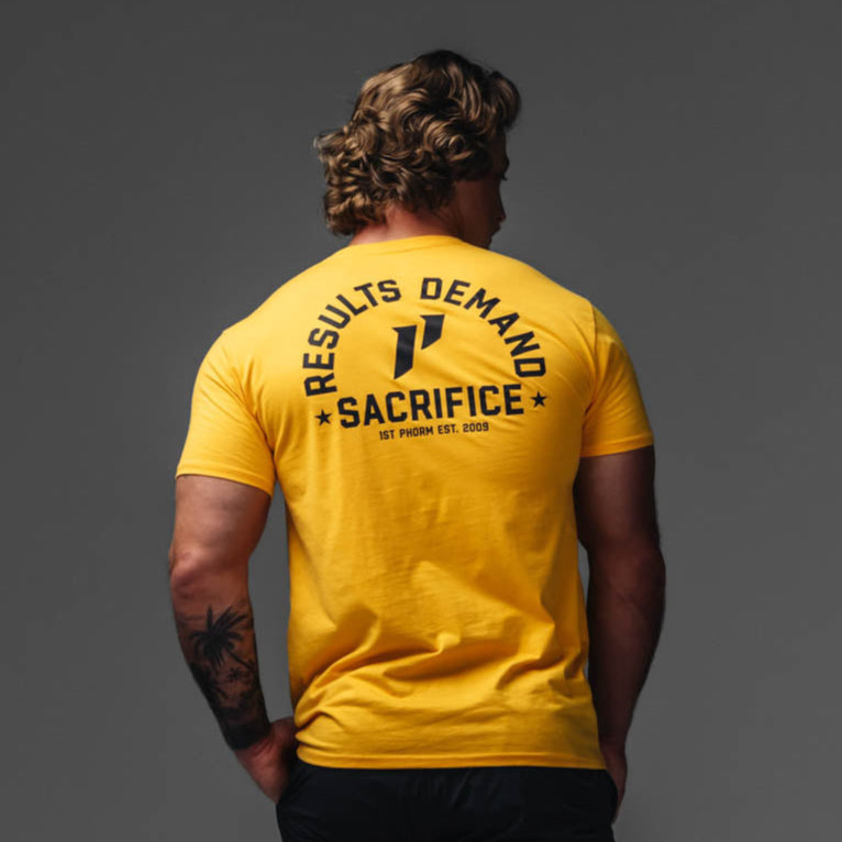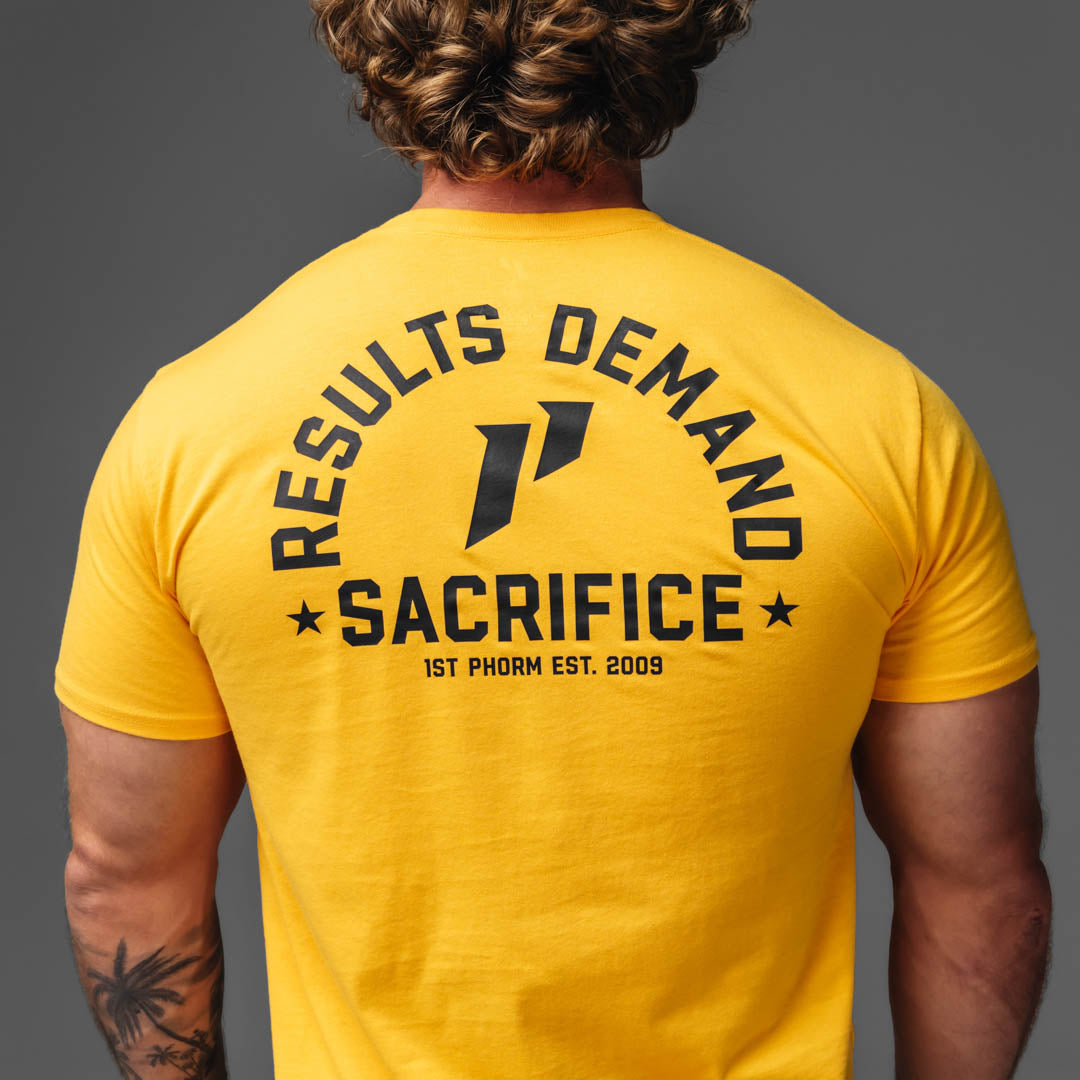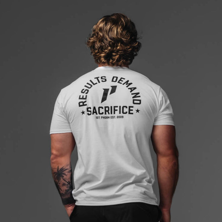 Made from our favorite. premium T-shirt material. the Results Demand Sacrifice Tee is a staple.