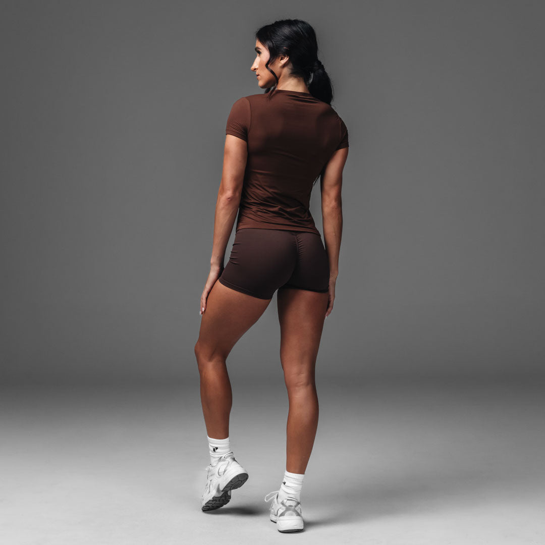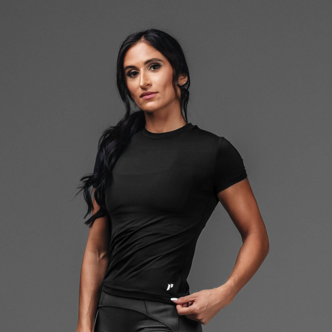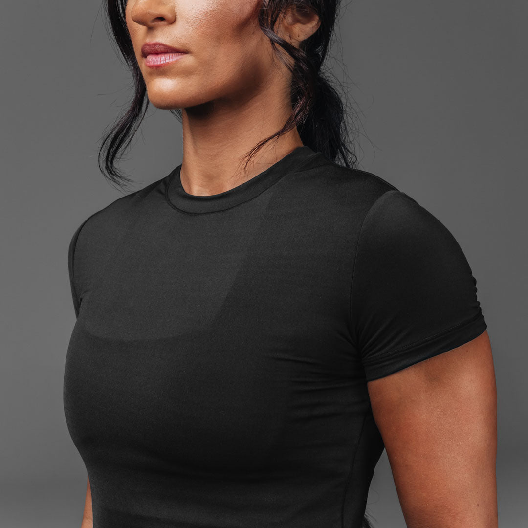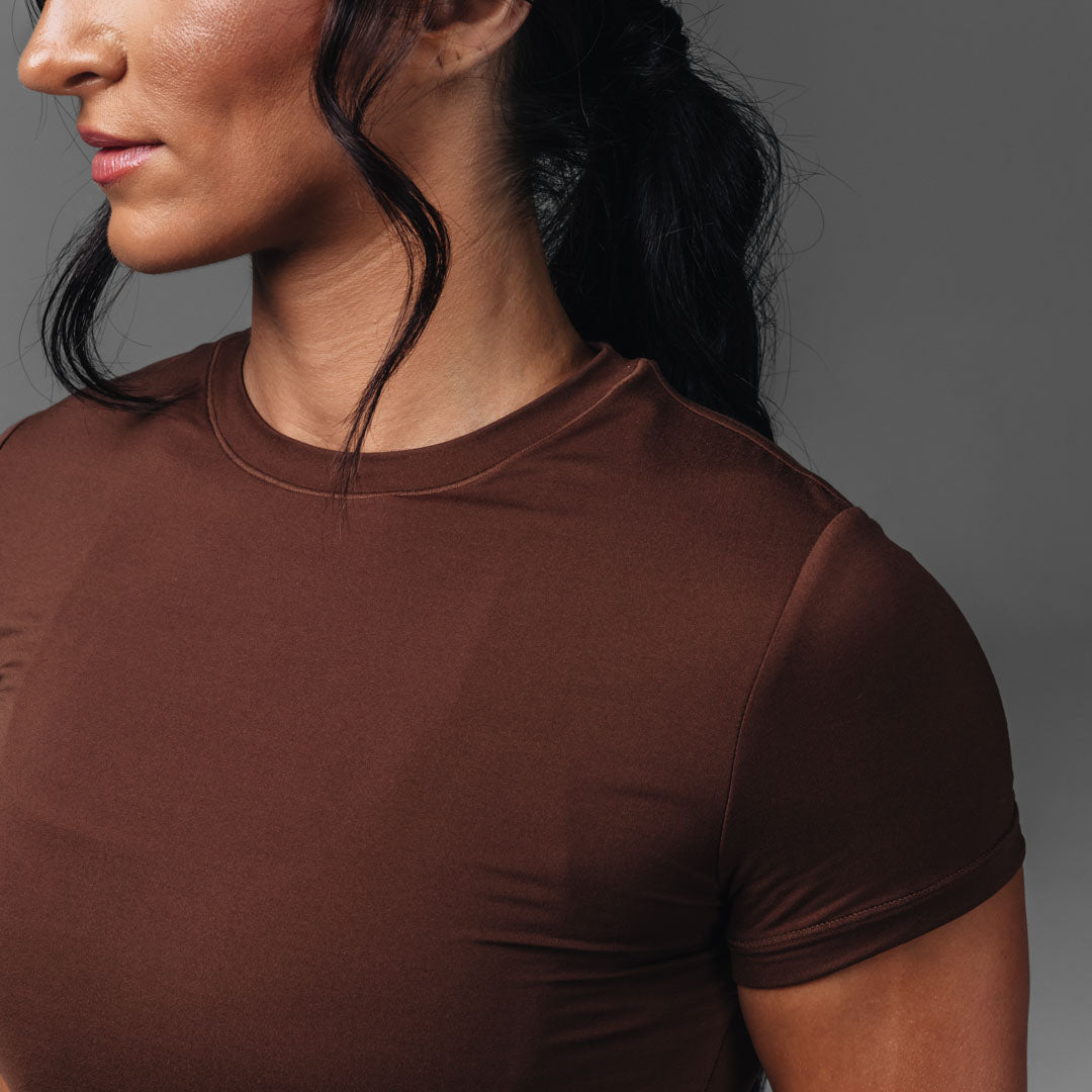 Meet your new go-to top for literally everything – athleisure. workouts. or just living your best comfy life. The Routine Short Sleeve fits like the perfect baby tee with a modern edge. Made from buttery-soft fabric and double-lined for that smooth. sculpted feel. it keeps you secure without being restrictive.