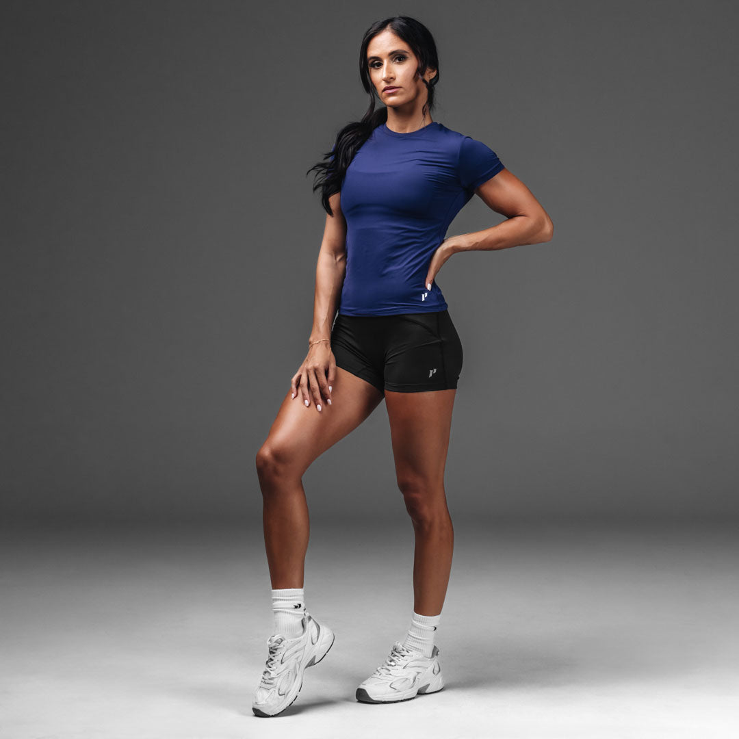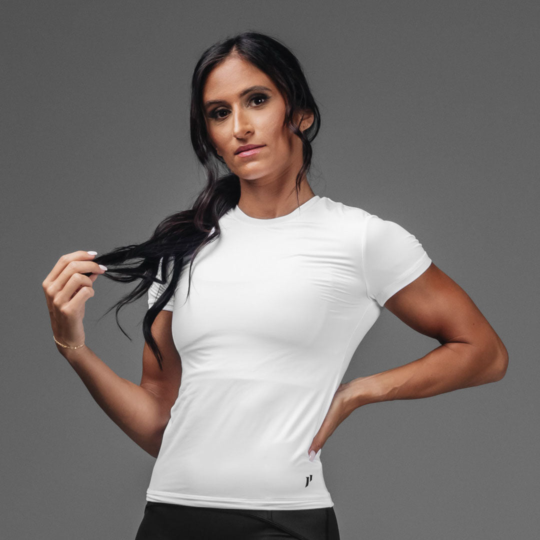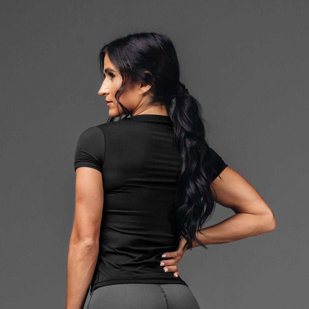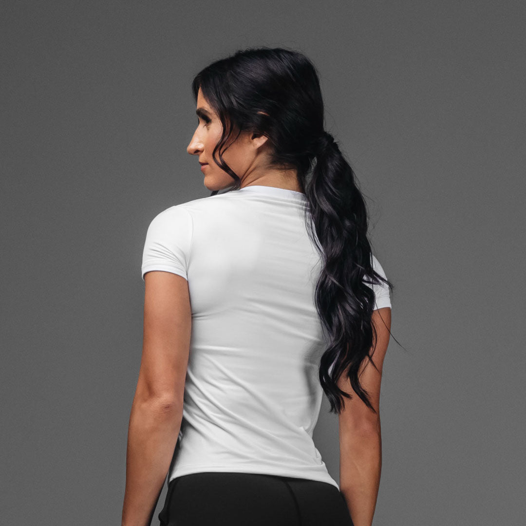Meet your new go-to top for literally everything – athleisure. workouts. or just living your best comfy life. The Routine Short Sleeve fits like the perfect baby tee with a modern edge. Made from buttery-soft fabric and double-lined for that smooth. sculpted feel. it keeps you secure without being restrictive.