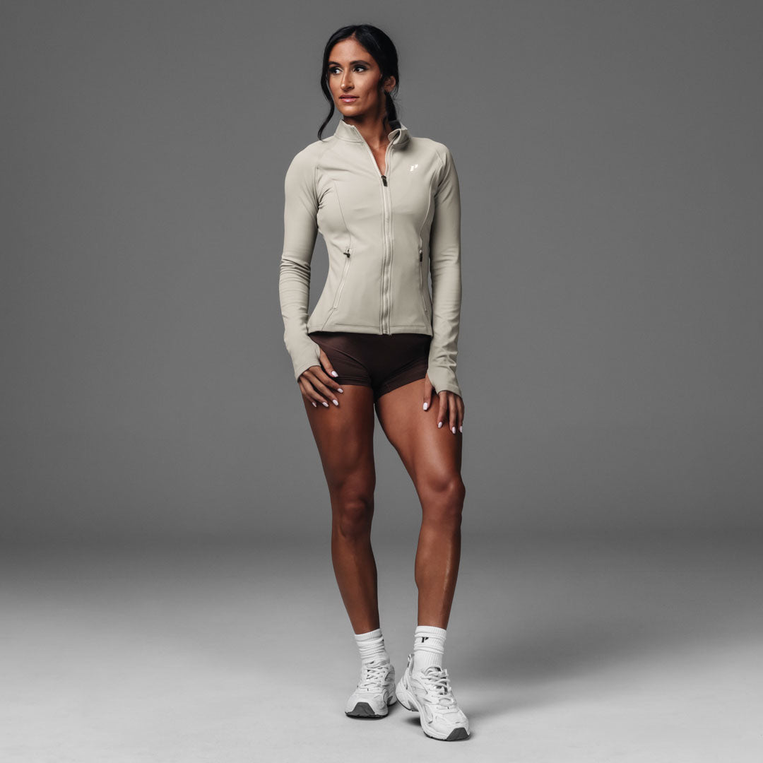 Where performance meets style. The Sculpt Full Zip is your go-to layer for warming up. cooling down. or running around. Designed with a flattering cropped length and a sleek full-zip front. this piece adds structure to your fit without sacrificing comfort.
